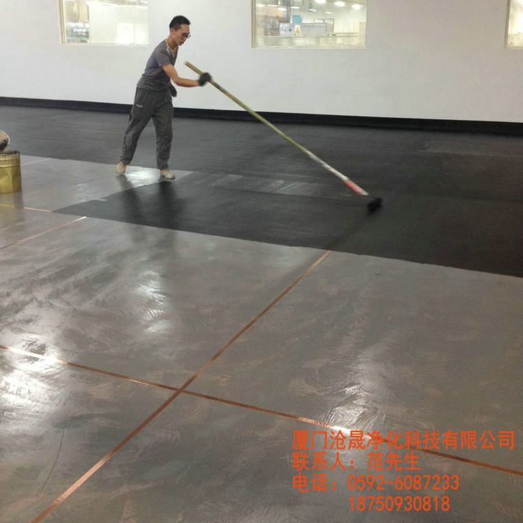 廠房地線。然后將導(dǎo)電底油用滾筒或鏝刀在鋪設(shè)銅網(wǎng)的地面上反復(fù)鏝涂兩次,形成導(dǎo)電層。